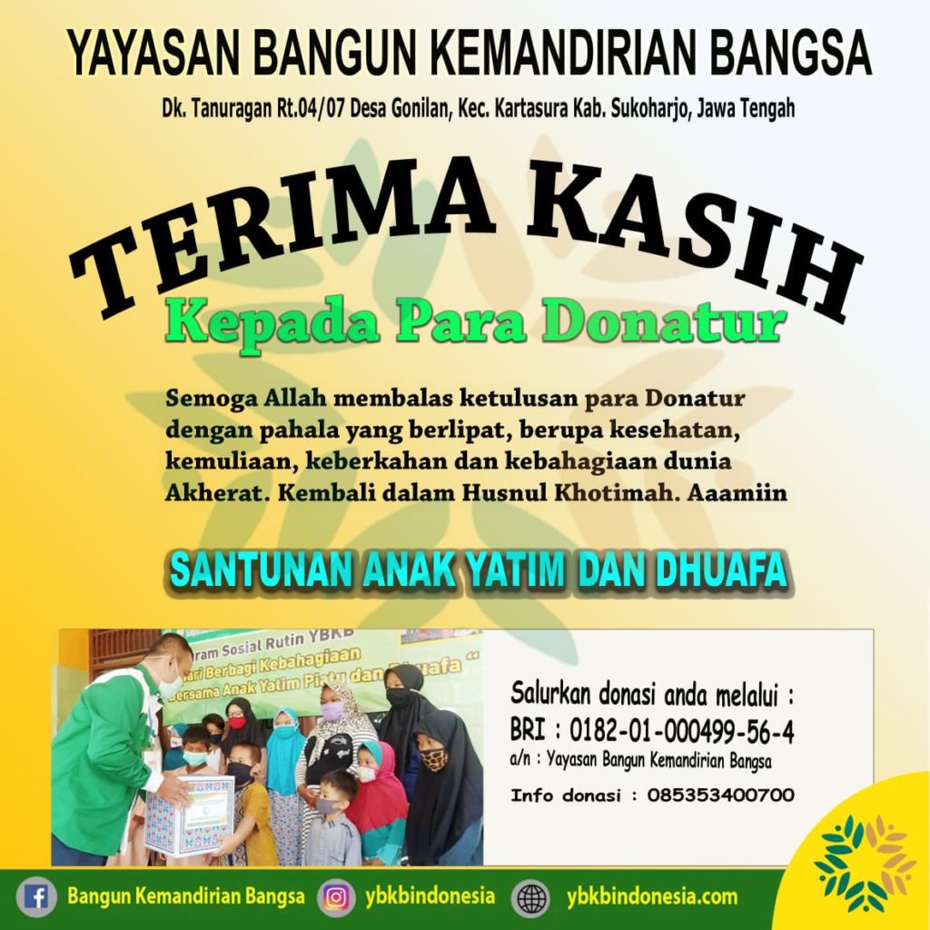 Puji syukur yayasan dharma bangsa mandiri sampai saat ini masih terus berbuat dan bergerak untuk kemaslahatan ummat, pekerjaan sosial ini . Dengan menjadi donatur tetap darul hikmah,. Adalah paket kebutuhan pokok yang di terima oleh anak yatim. Doa untuk donatur santunan anak yatim, contoh doa acara santunan anak yatim. Teks lafadz bacaan doa untuk memberi santunan kepada anak yatim. (1) doa untuk kebahagiaan dunia dan akhirat . Doa yatim piatu untuk para donatur yds. Anak yatim di panti kami membutuhkan makanan yang bergizi untuk. Rencana penggunaan dana pencairan : Doa anak yatim kepada donatur for android apk download segala puji bagi allah atas limpahan rahmat. Wahai allah tuhan manusia, hilangkanlah rasa sakit ini. Anak yatim doa bersama untuk para donatur. Allahumma rabban naas, adzhibil ba'sa.